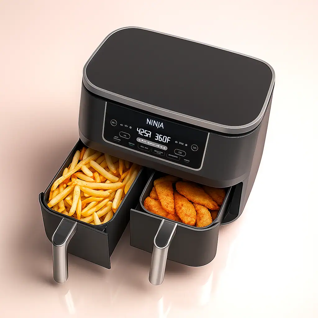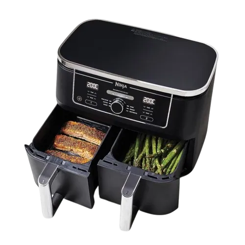 Smart Finish: This is pure sorcery. You tell the Ninja Air Fryer you’re cooking salmon (which takes 12 minutes) and broccoli (which takes 8 minutes). It calculates the different cook times and automatically starts each basket so that both dishes finish at the exact same moment. Hot, perfectly cooked everything, ready to plate together.
